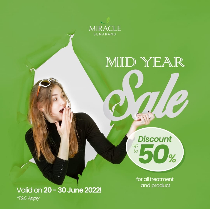 Program Miracle Semarang Mid Year Sale 2022 memberikan diskon besar sampai dengan 50% yang berlaku untuk semua perawatan dan pembelian produk.