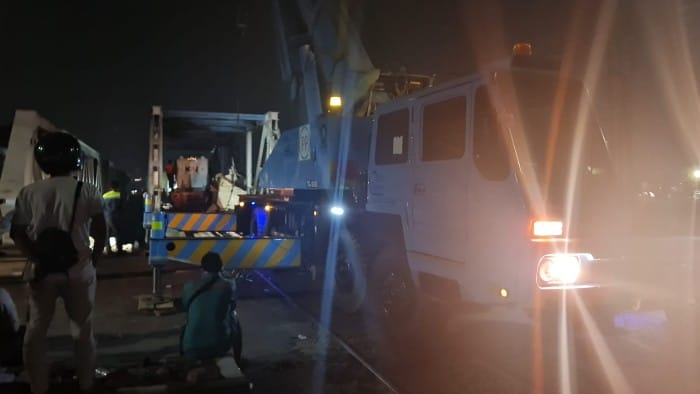 Untuk jalur satunya, yakni jalur hulu saat ini sedang proses evakuasi dengan membebaskan lokomotif dari bakalan sisa truck yang ada di depan lokomotif.