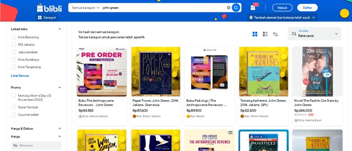 Beli kumpulan buku John Green di Blibli karena ada banyak promo menarik yang sayang untuk dilewatkan!(eff)