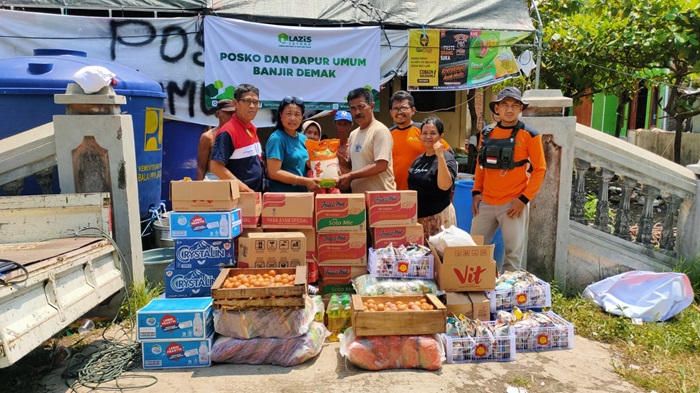 Bantuan banjir sejumlah 150 paket sembako (minyak, beras, dst) dan 150 nasi bungkus tersebut diberikan langsung di Posko dan dapur umum di area kecamatan Karanganyar kabupaten Demak Desa Cangkring pada Sabtu kemarin (17/2/2024)