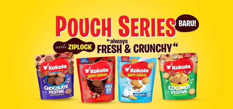 Biskuit Kokola Pouch Series hadir dengan kemasan yang elegan dan menarik. Dengan kemasan Pouch, terdapat Ziplock yang menjadi lebih praktis dan menarik. Kemasan Ziplock memudahkan konsumen untuk membuka dan menutup kemasan tanpa harus menggunakan alat tambahan. Dengan design Kokola Pouch Series ini juga mudah dibawa dan menjadi pilihan yang tepat untuk berbuka puasa atau sebagai oleh-oleh untuk keluarga dan teman. saat hari raya.
