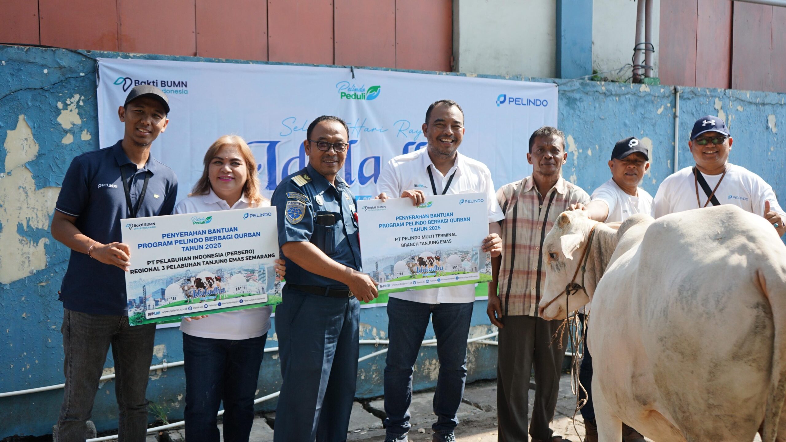 METROSEMARANG.COM, Semarang – Dalam rangka peringatan Hari Raya Idul Adha 1446 H, PT Pelabuhan Indonesia (Persero) (Pelindo) Group di lingkungan Cabang Tanjung Emas berbagi hewan kurban untuk insan maritim dan warga sekitar pelabuhan Tanjung Emas Semarang.