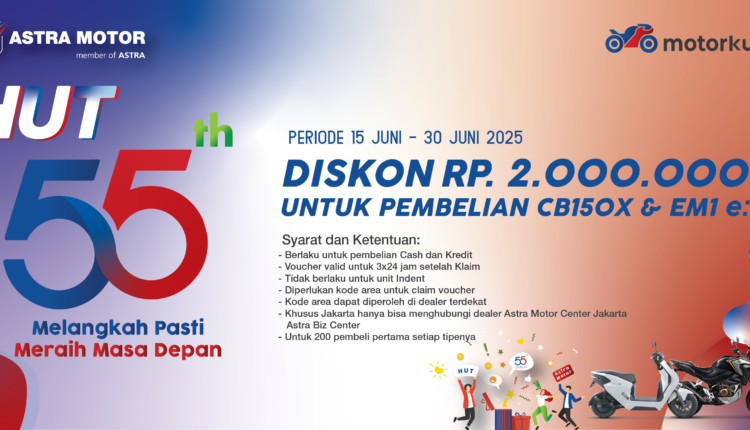 Rayakan 55 Tahun Astra Motor: Diskon Fantastis Motor Honda dan Promo Servis Lewat Aplikasi Motorku X