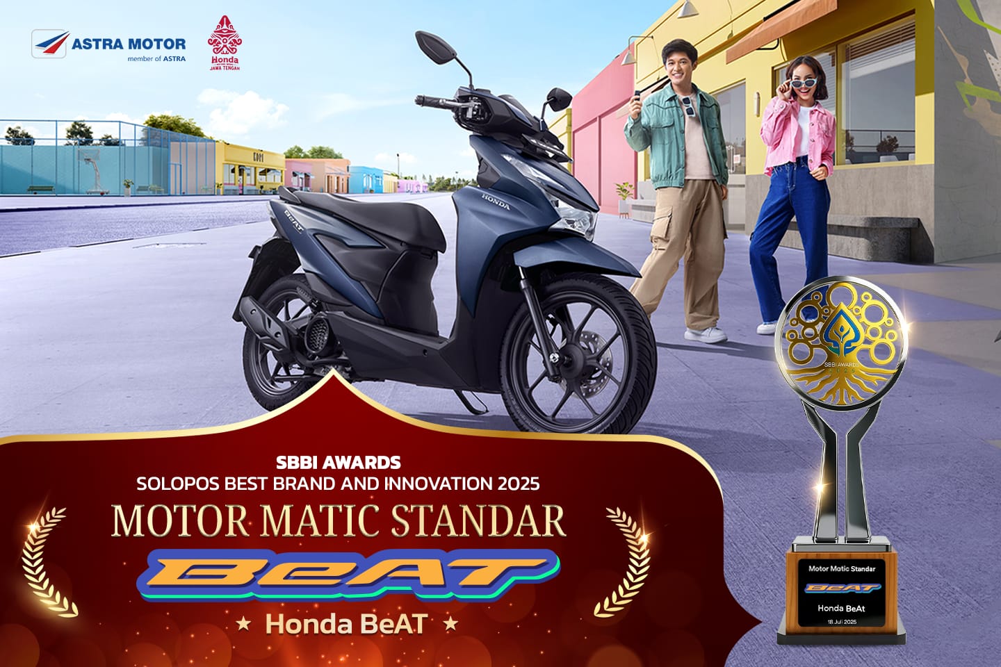 Dalam ajang Solopos Best Brand & Innovation (SBBI) Award 2025 yang digelar di Hotel Alila Solo, Jumat (18/7/2025), Honda BeAT sukses mempertahankan gelar sebagai Best Brand Motor Matic untuk keempat kalinya sejak 2022.